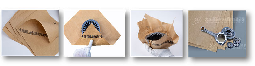 具有气相防锈性,在防锈纸纸面上涂有气相缓蚀剂,气相缓蚀剂具有一定的蒸气压,使用过程中,气相缓蚀剂持续性挥发,能够在密闭空间始终处于“饱和”状态,因而可达到长期、稳定、优良的防锈效果。做为一种革新性的防蚀产品,其已成功取代传统的防锈油、真空袋和蜡纸市场。